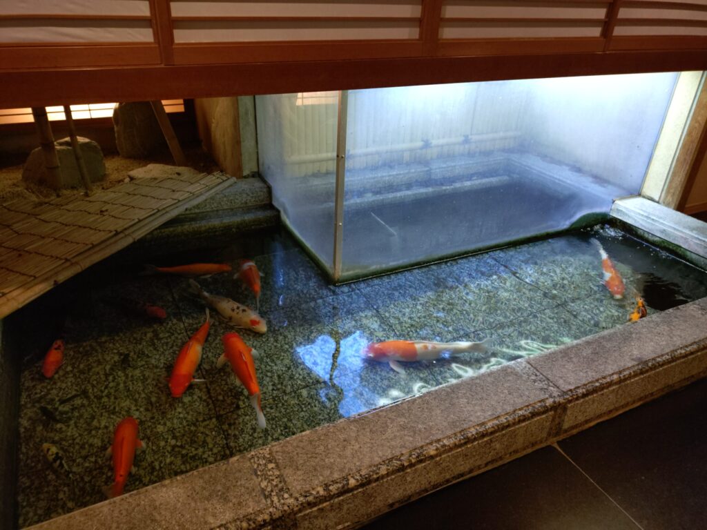 また、館内には鯉が泳ぐ池もあり、子どもも大人も思わず足をとめてしまう癒しの空間です。四季折々の自然美と歴史ある和の風情が調和し、特別なひとときを過ごせます。